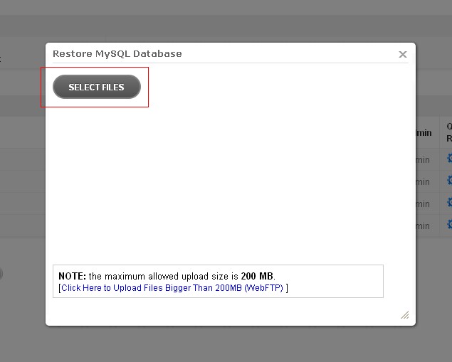 - After a database is created, on the left handside of your database, you should see a Restore Icon. Click on Restore and choose to restore your database by uploading a backup file.
