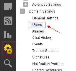 3. Expand the Domain Settings folder and click Users in the navigation pane. A list of users on the domain will load in the content pane.
