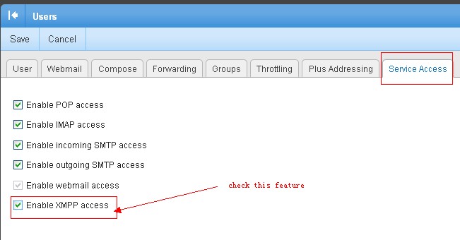 6. Select the Enable XMPP access checkbox.