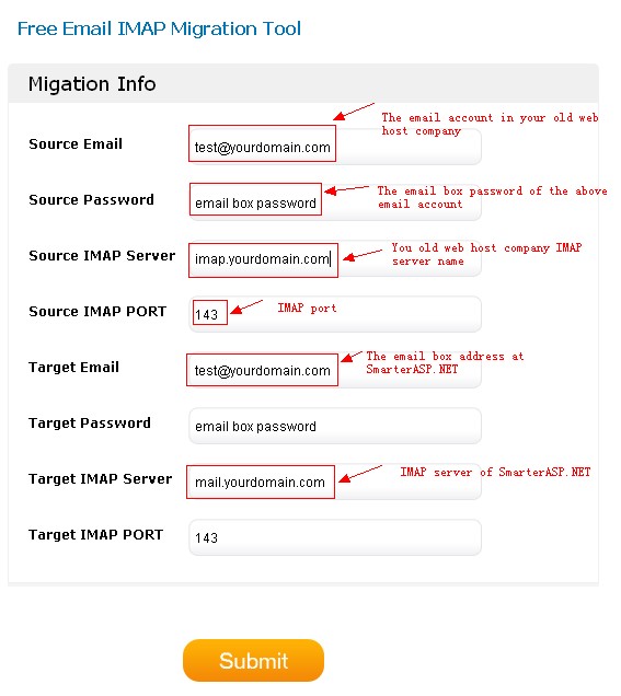 3. Use myWindowsHosting.com free Email IMAP Migration Tool, click