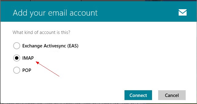 5. Select the protocol which you want to retrieve your email messages (POP or IMAP)