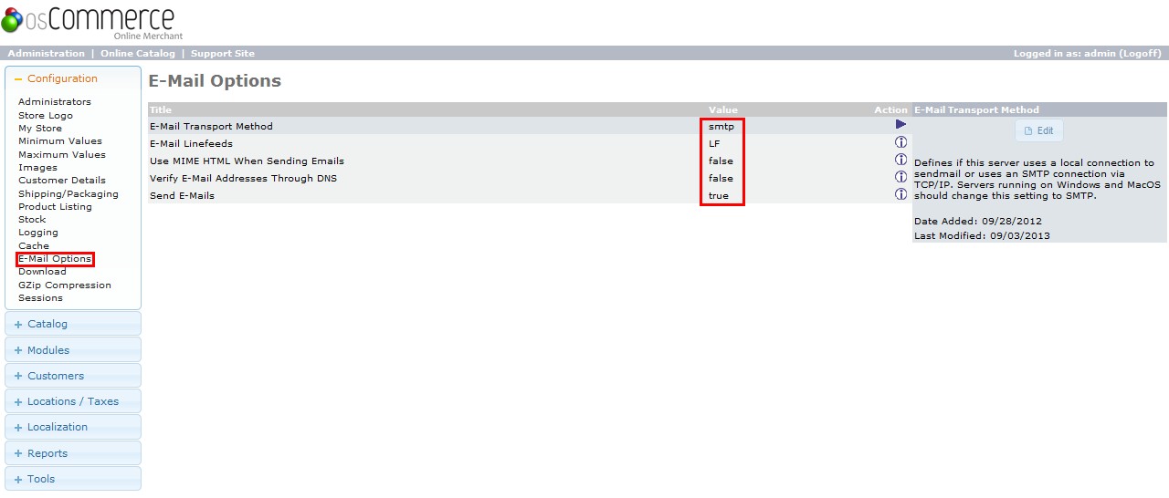 OSCommerce could be setup to use the SMTP functionality inside its back-end, but there are some manual modifications needed in order to fully setup the SMTP functionality of this application. Follow these steps to complete the setup:
