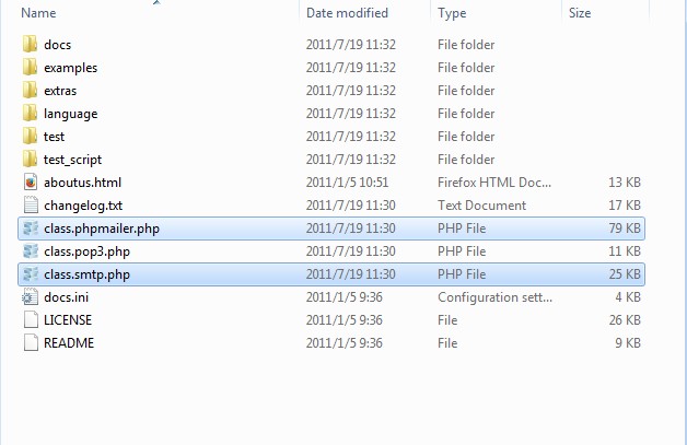 2. Find files class.phpmailer.php and class.smtp.php from phpMailer package.
