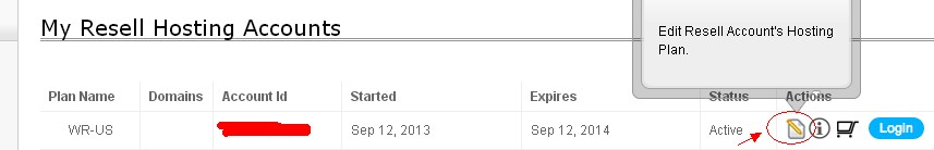 Secondly please click the edit pen to edit resell plan's hosting plan