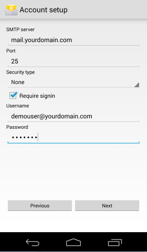 4.Configure your email account SMTP info, SMTP server is mail.yourdomain.com, please replace yourdomain.com to your real domain name. SMTP port 25 or 8889, SMTP username is the full email address, password is the email account password.