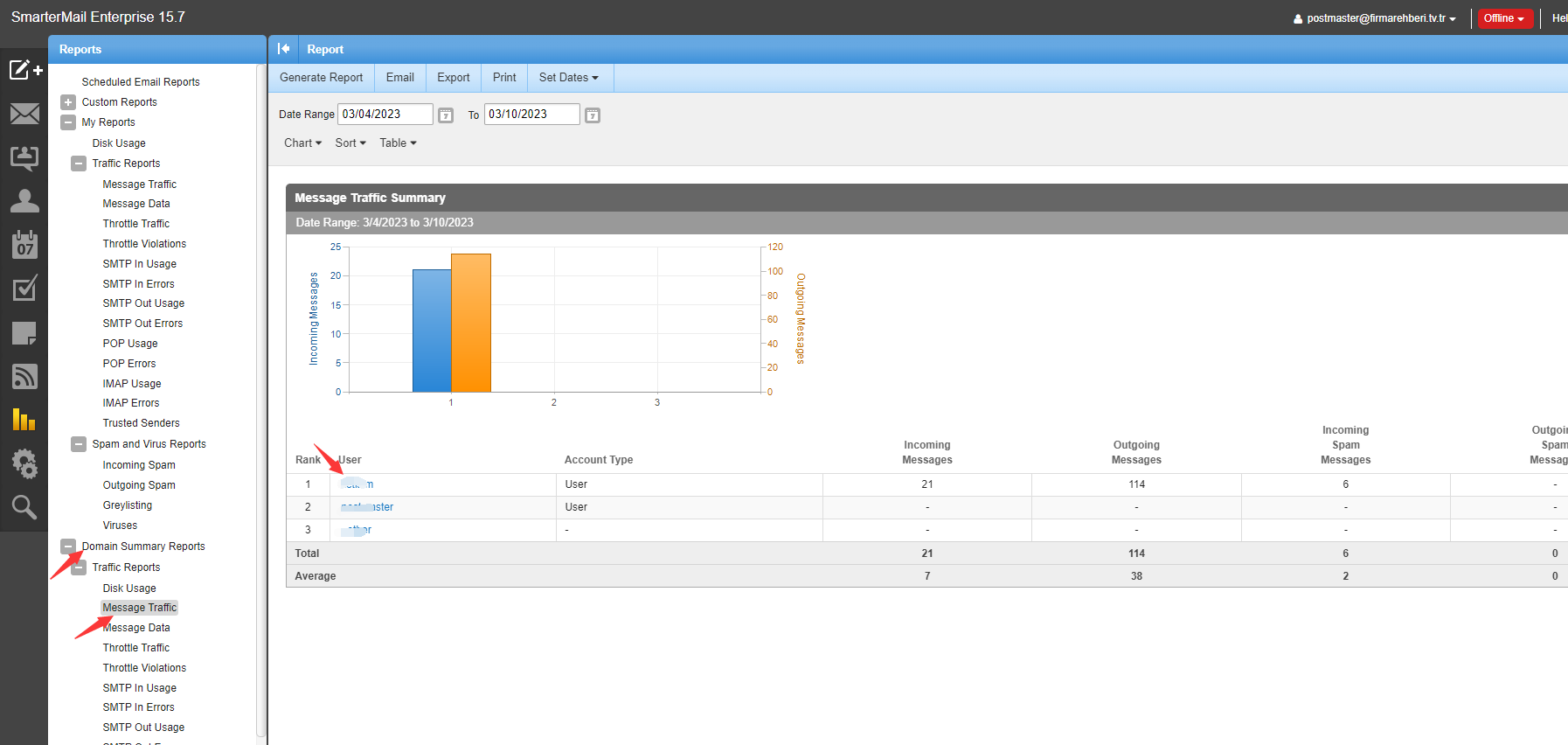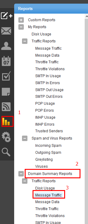 2 Next to Reports/Domain Summary Reports, click Message Traffic to check it