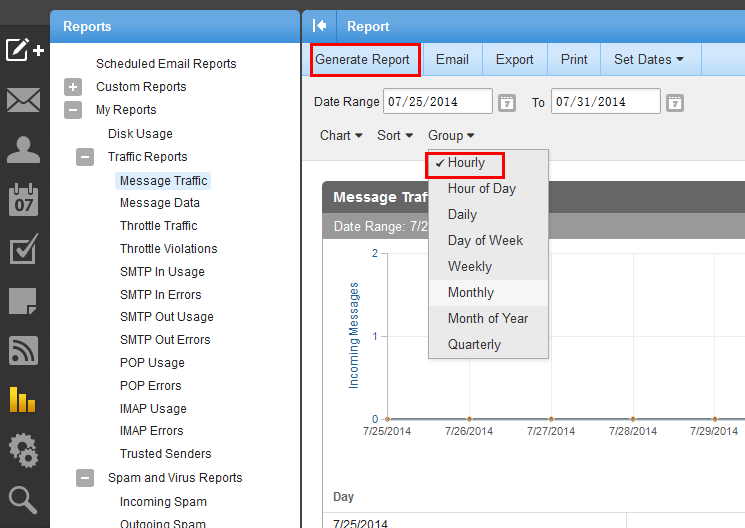 3 By default, the report grouped daily. You can re-generate report to show it hourly after select specific email user.