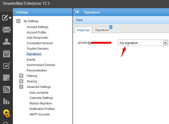 5, Go back to the settings-->My settings-->Signatures-->Mappings to choose your created signature to mapping to your email account.