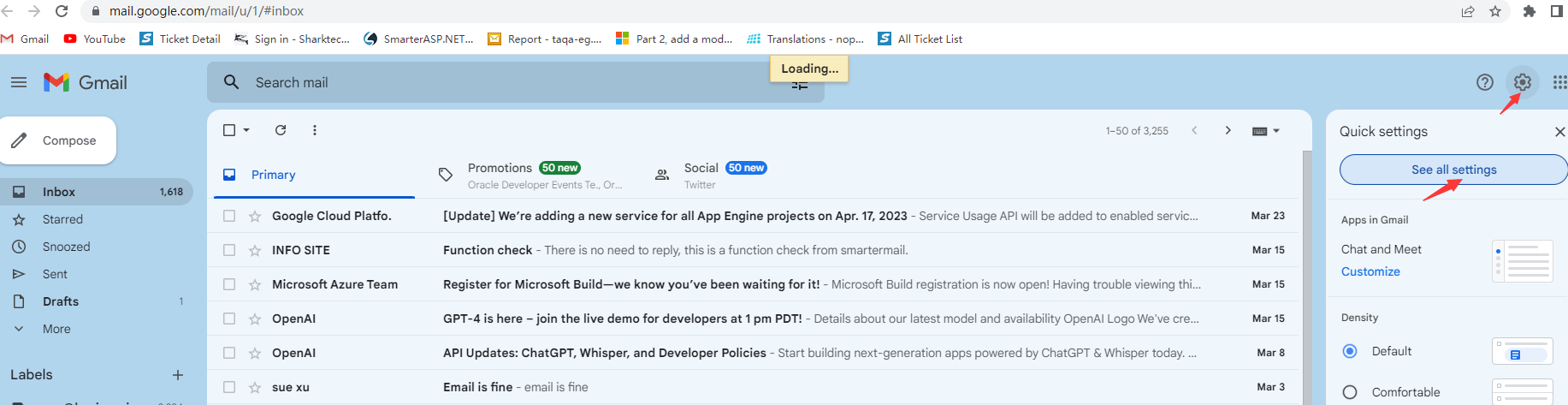1. Login into your Gmail account, click the "settings" --->"See all settings"button on the right of the page.