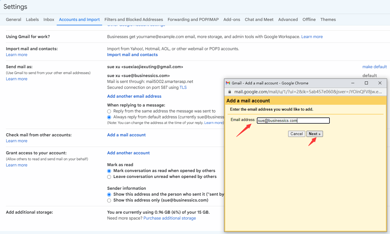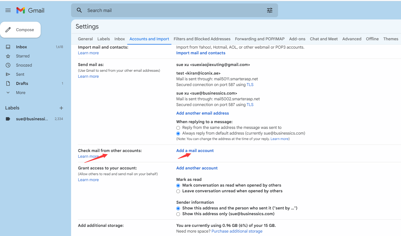2. Go to the settings->Accounts and Import panel, click the "Add mail account" button.
