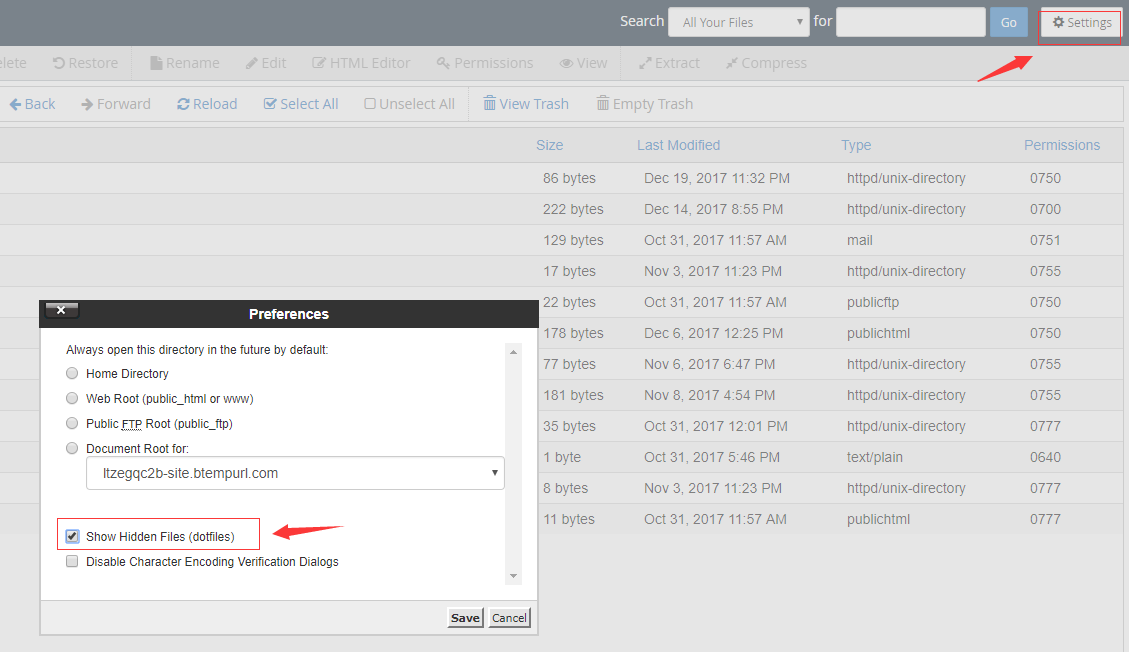 2) In file manager -> Setting, click on it and select SHOW HIDDEN FILES