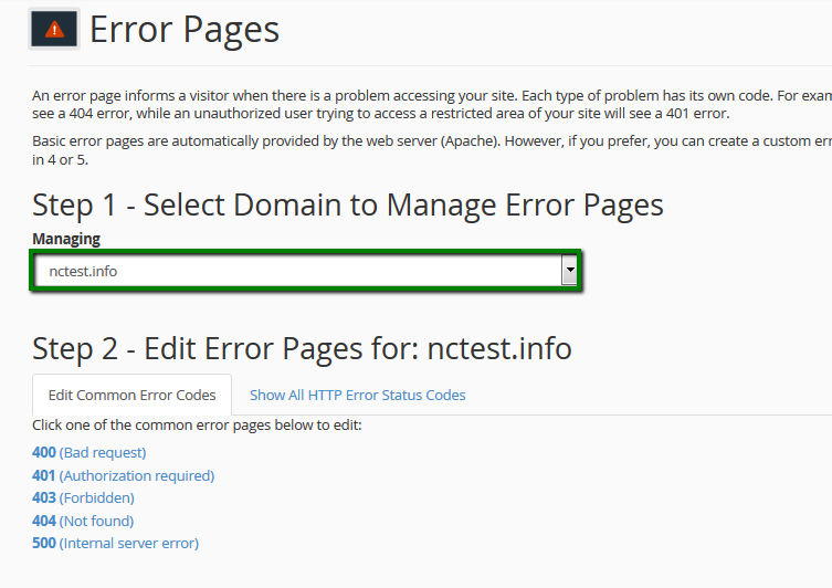 Error pages are displayed when a user enters a wrong/outdated URL or when one is not authorized to access a specific directory of your web space. cPanel allows you to customize the default view and adjust the way the error is displayed: