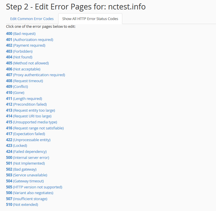 If you cannot find the needed error code in Edit Common Error Codes tab, switch to Show All HTTP Error Status Codes: