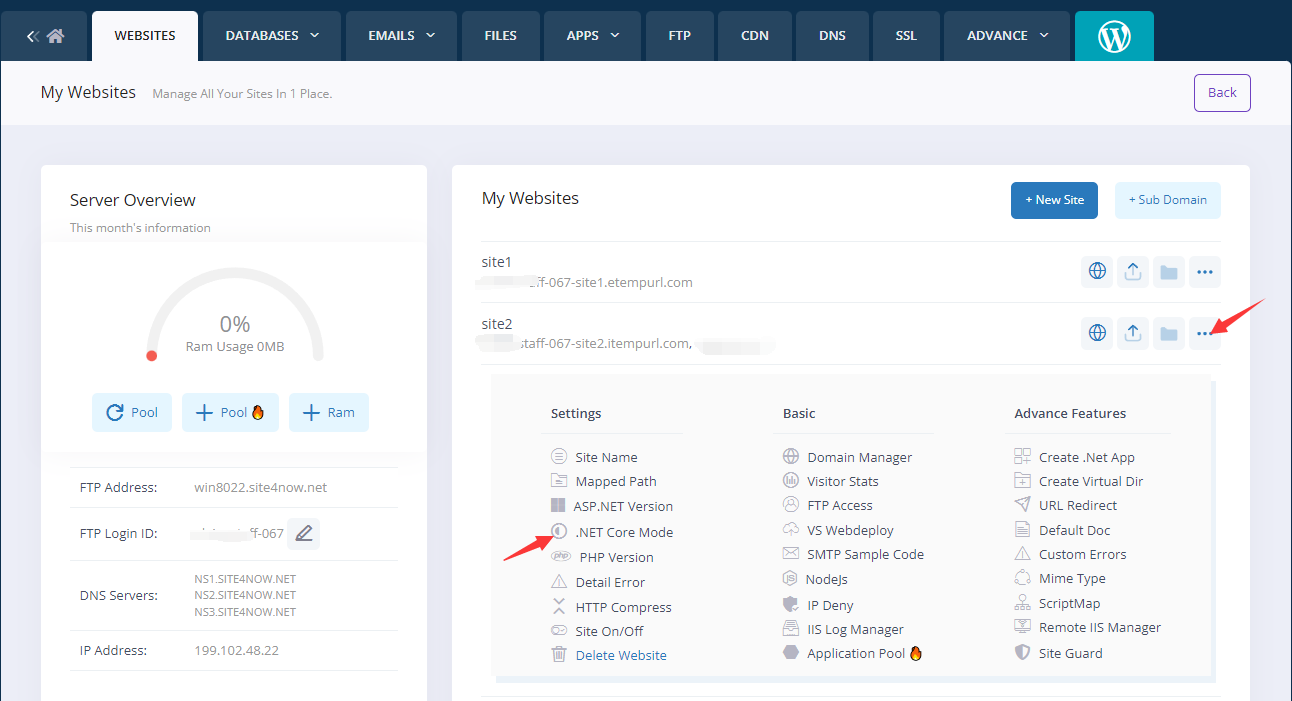 2) Upgrade to premium or higher plan to host .net core app separately in dedicated pool.