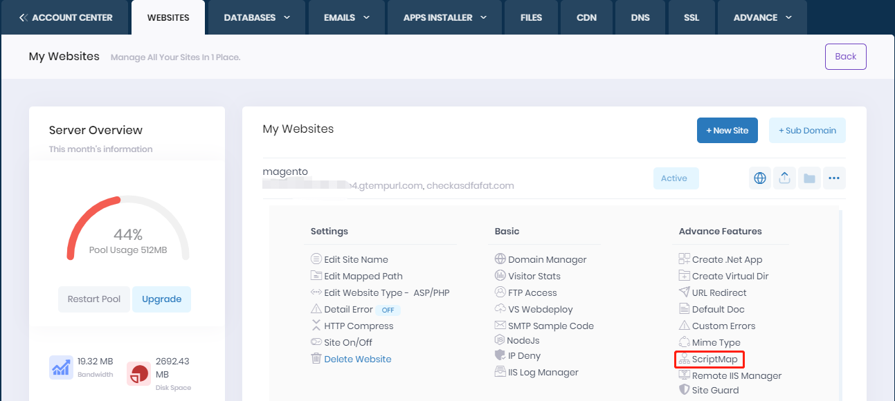 1. Login to your hosting control panel -->WEBSITES --> Manage Website