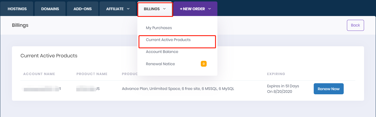 You can login to your Member account center --> Billings --> Click Current Active Products to check your active service: