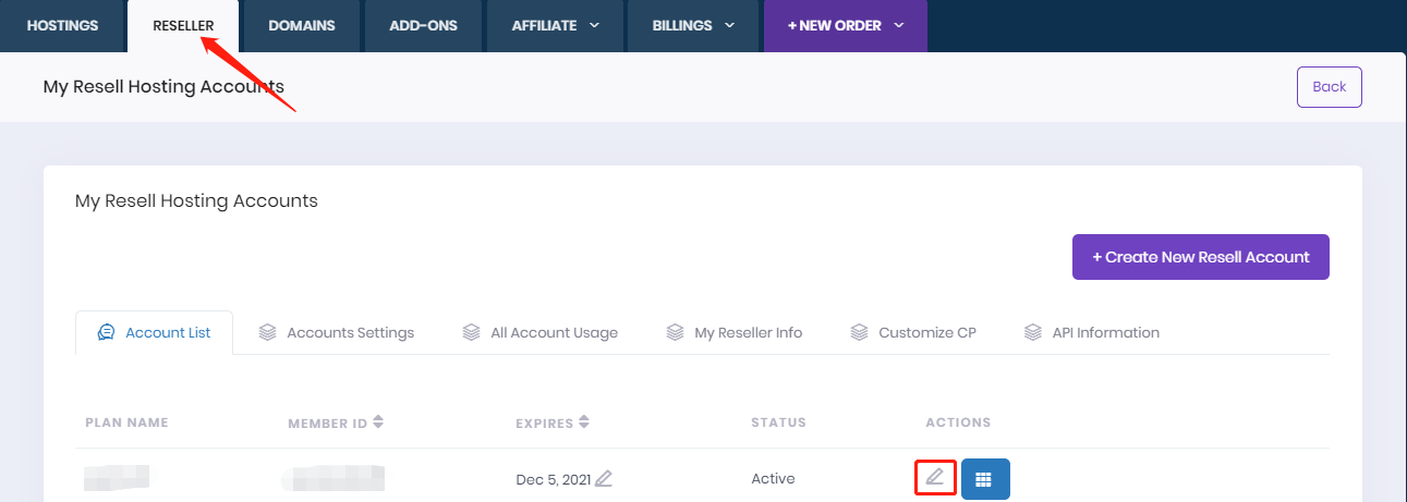 1. Please login to your member account, click "RESELLER" from the top navigation
