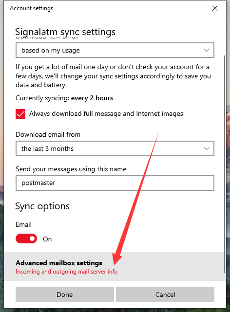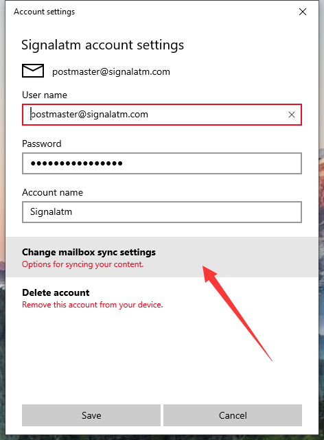 Click on Red item "Change mailbox sync settings"