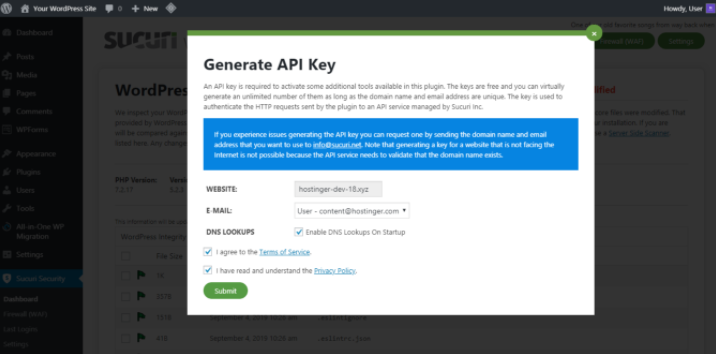 Once it is installed, you’ll need to go to the plugin’s dashboard and Generate an API Key to activate its features fully.