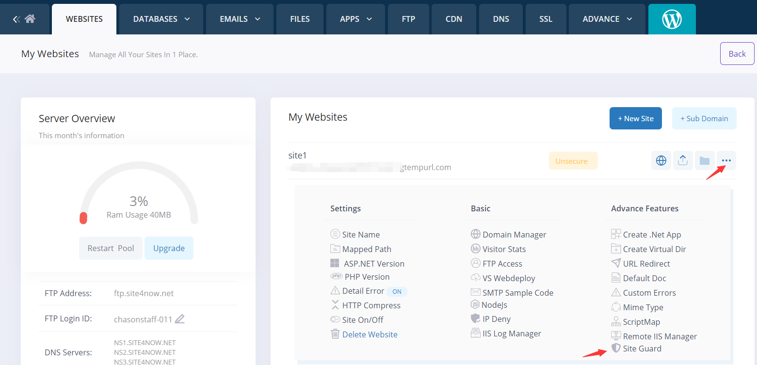 Site Guard can stop buffer overflow, SQL injection, directory traversal, character encoding and other attacks. This way we can protect your sites against all known and unknown attacks. It's different from a regular Firewall.Firewall is included in all of our hosting package for free. However, firewall only protects our servers and network layers. Each and every individual are still vulnerable due to poor programming practice or lack of security knowledge. 95% of web applications out there have flaws that can let hacker intrude your website easily. That's why it's important to use our Site Guard service.