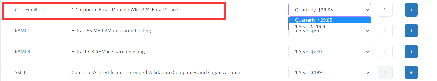 We design a product named "CorpEmail". This add on will allow you to increase your domain email disk space to 20GB. One add on quota is for one domain name.