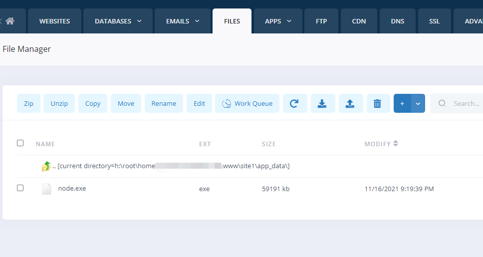 After saving the file, upload node.exe to an /App_Data directory on the site.
