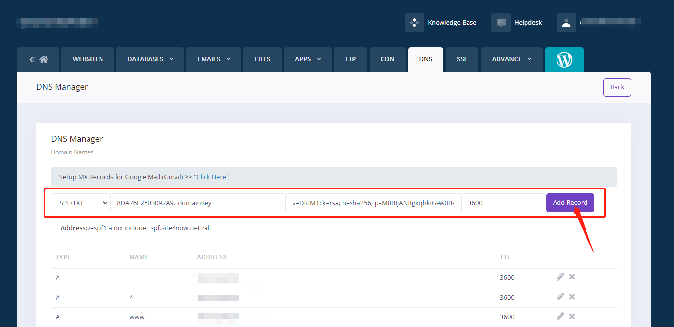 If you are using our name servers, you can copy the related DKIM value to Control Panel>>DNS and add TXT record.