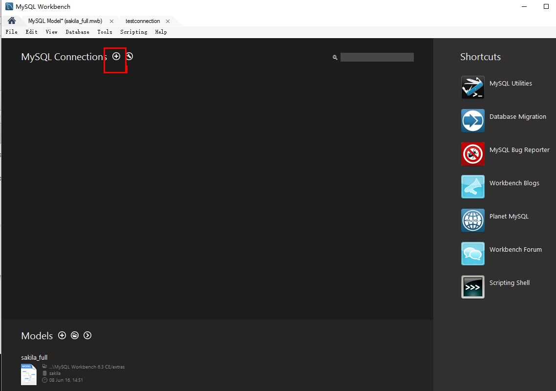 1.Launch MySQL Workbench. You will be presented with the Home window,click